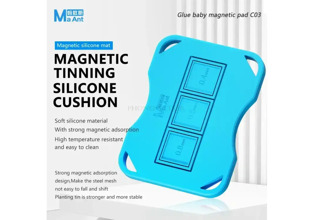 پد سیلیکونی MAANT C03 یک ابزار حرفهای برای تعمیرکاران موبایل، لپتاپ و بردهای الکترونیکی است که به دقت، نظم و ایمنی در حین کار اهمیت میدهند. این پد با طراحی مهندسیشده و استفاده از مواد با کیفیت، تجربهای مطمئن و کارآمد را در محیطهای تعمیراتی فراهم میکند.
