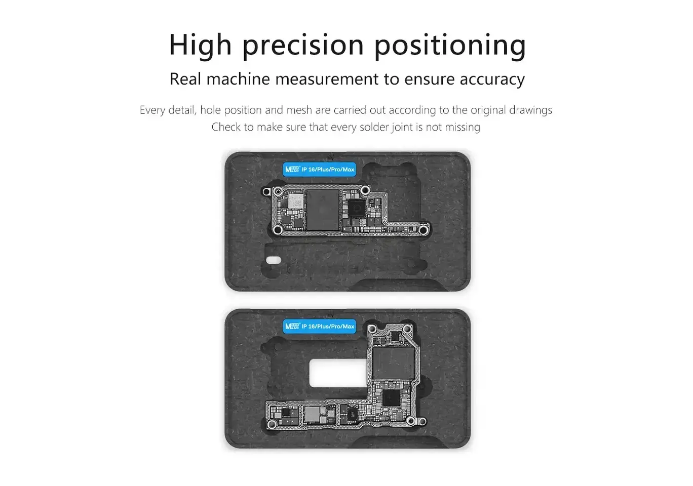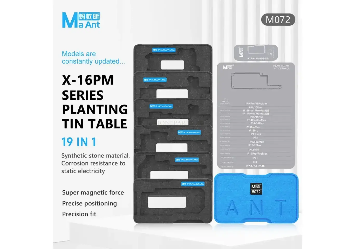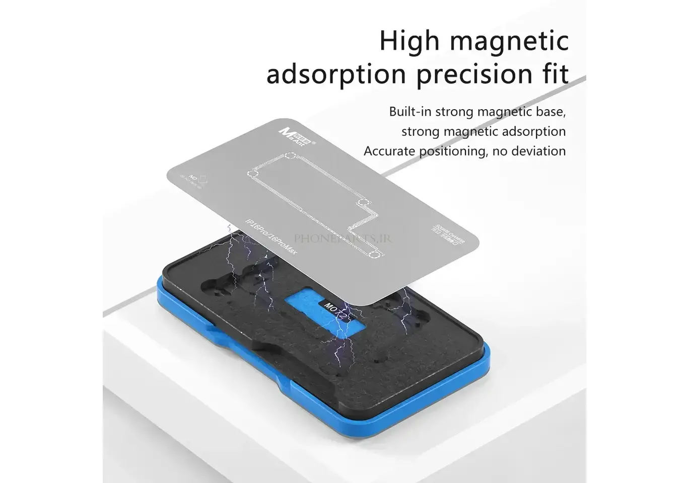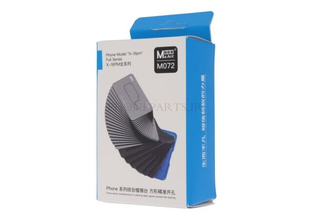 ست حرفهای MaAnt مدل M072 شامل ۱۹ قطعه تخصصی برای قلعکاری و تثبیت لایههای مادربرد آیفون از مدل X تا 16 Pro Max است. این مجموعه با طراحی دقیق، صفحه موقعیتدهی قابل تنظیم و پایههای مغناطیسی قدرتمند، فرآیند ریبالینگ و تعمیرات BGA را با دقت بالا و بدون لغزش انجام میدهد. مناسب برای تعمیرکاران حرفهای موبایل که به ابزار دقیق و چندمنظوره نیاز دارند.