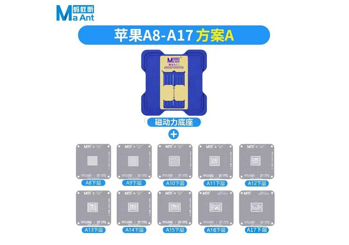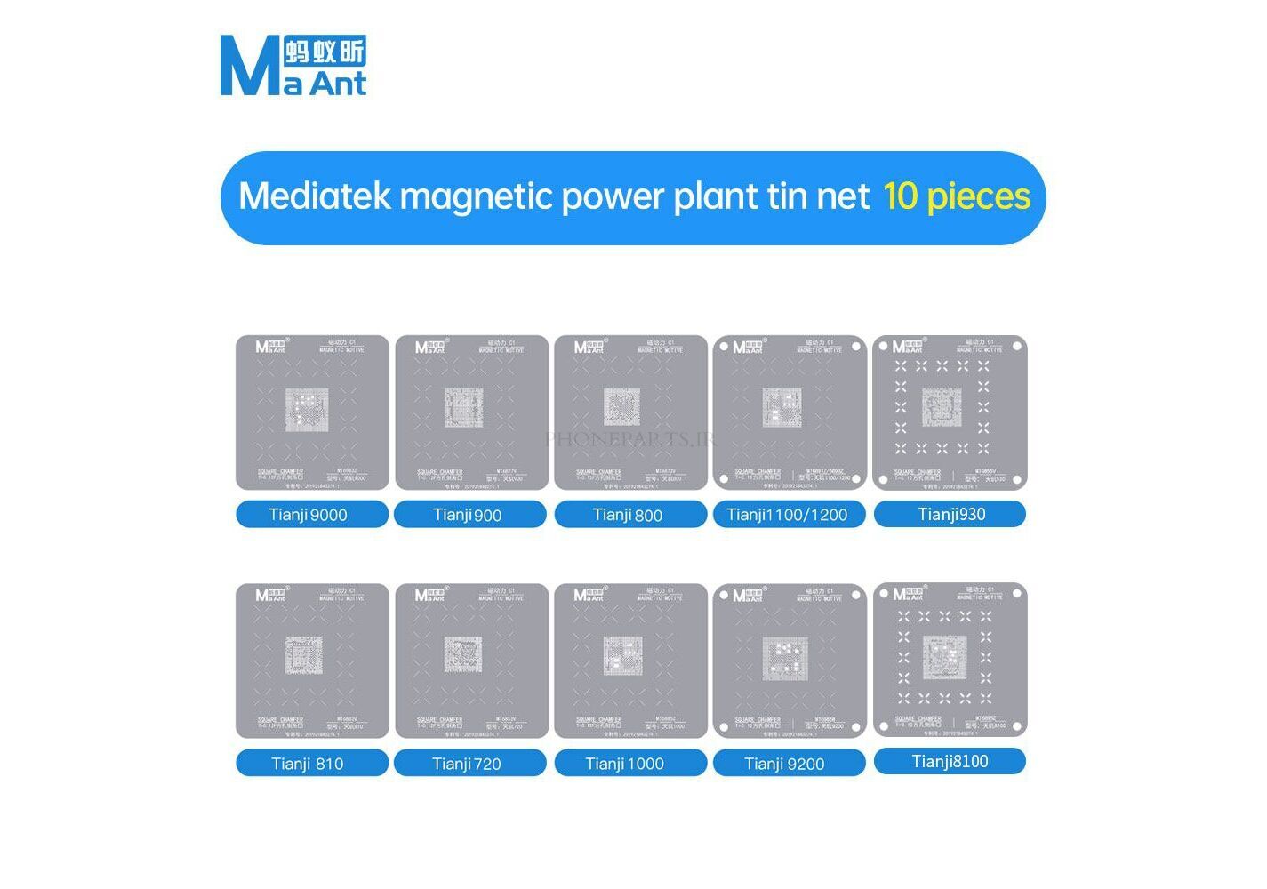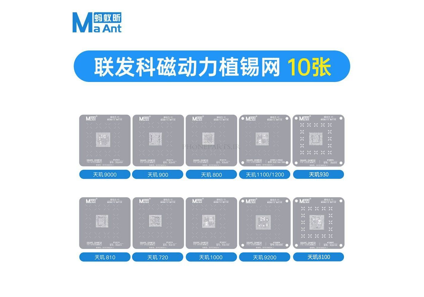 شابلون مگنتی آی سی آیفون و اندروید MaAnt مدل C1 یک ابزار حرفهای برای تعمیرات موبایل است. این ست شامل 69 ماژول مختلف است که برای تعمیرات آیفون و اندروید طراحی شدهاند. این شابلونها از جنس آلیاژ فولاد با کیفیت بالا ساخته شدهاند و مقاوم در برابر حرارت هستند