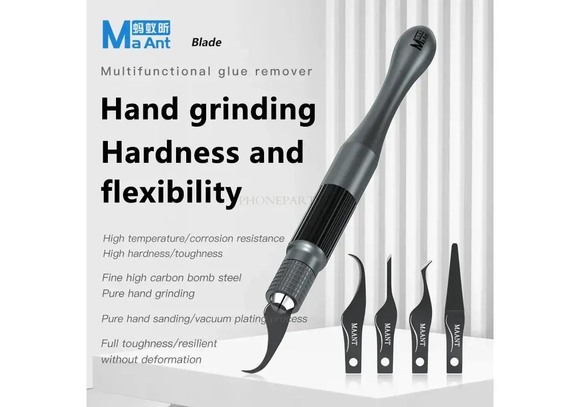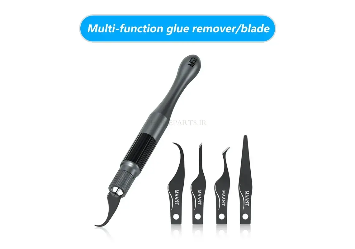 “MaAnt MY-102 Multi-functional Glue Removal Knife Blade Set” یک مجموعه تیغههای چسبگیری چند منظوره است. این ابزار مخصوص تعمیرات تلفن همراه و دستگاههای الکترونیکی است. جزئیات این مجموعه عبارتند از: