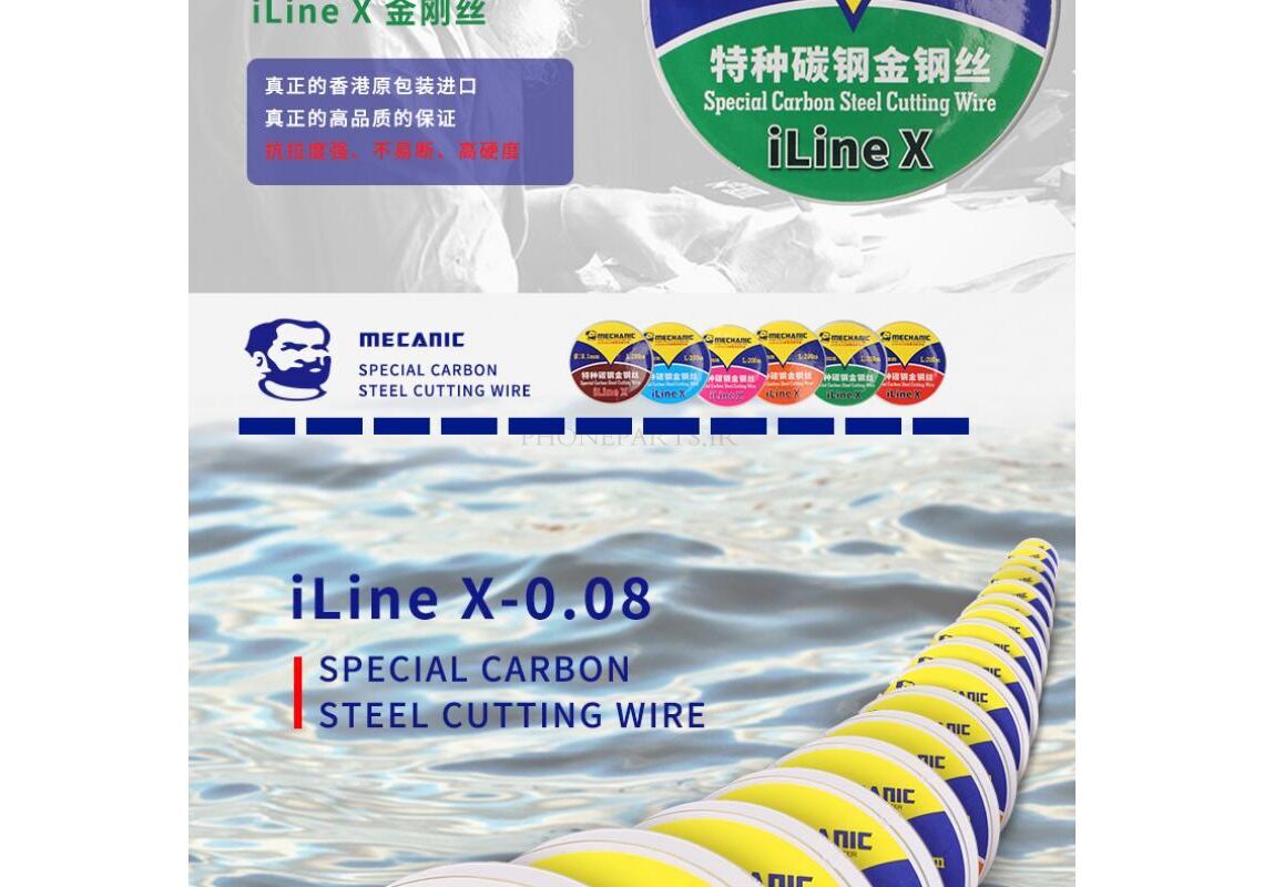 سیم برش iLine X از برند معتبر Mechanic، یکی از بهترین و پرفروش‌ترین ابزارهای جداسازی صفحه نمایش موبایل در جهان است. این سیم از جنس فولاد کربن ویژه با سختی بالا (High Hardness Special Carbon Steel) ساخته شده و برای جداسازی دقیق و بدون آسیب LCD و OLED (شامل صفحه‌های خمیده Edge و منحنی) طراحی شده.