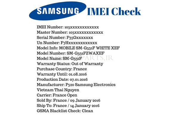 چک اینفوی گوشی سامسونگ مطابق با تصویر محصول
